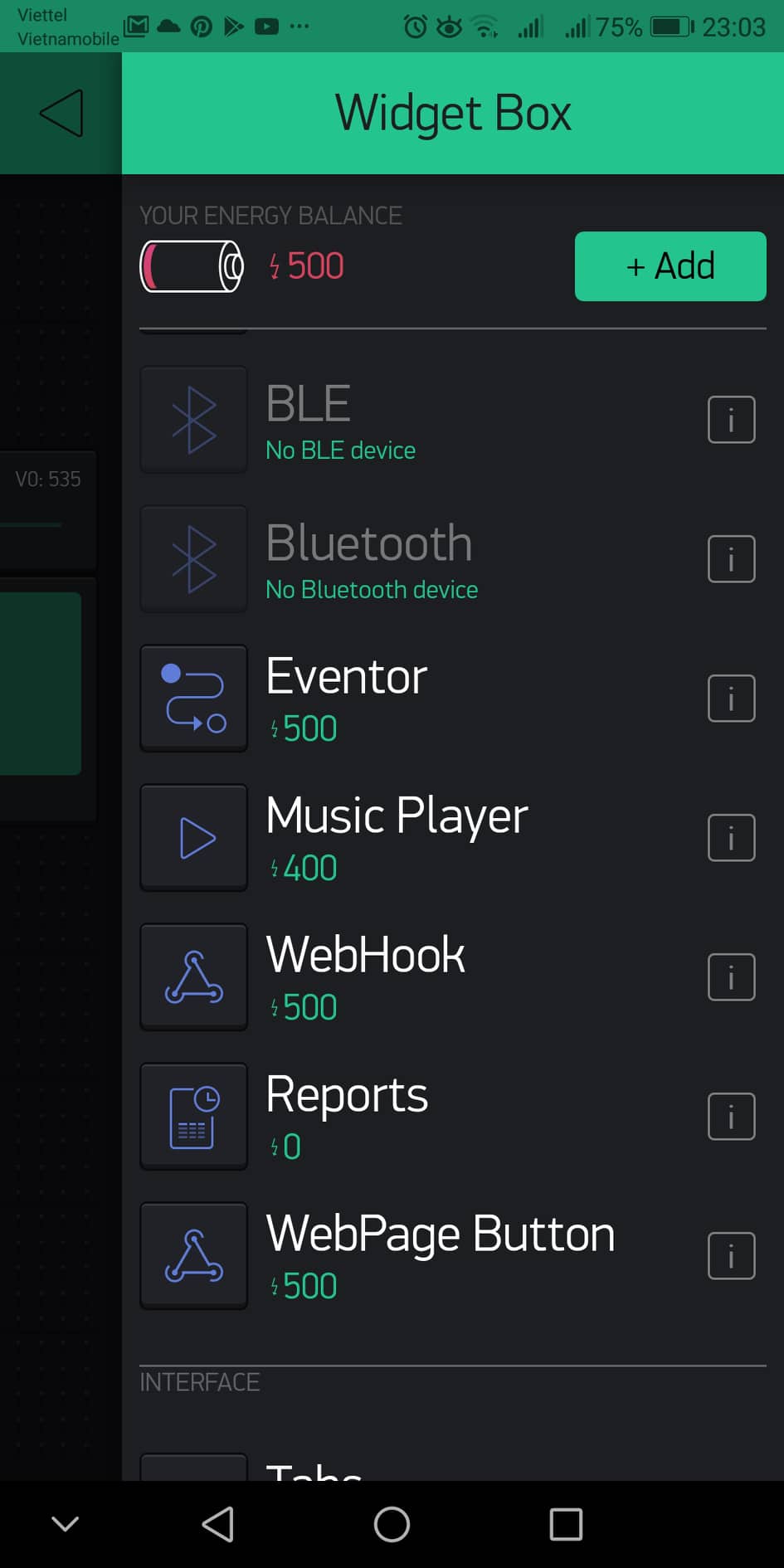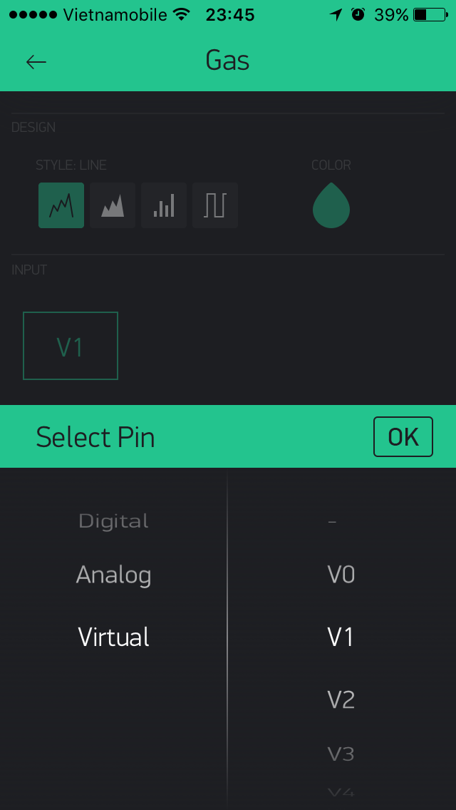 Virtual là các chân dùng để trao đổi dữ liệu giữa phần cứng với App Blynk ở đây mình chọn (V1 cho Cảm biến khí Gas (MQ-2).