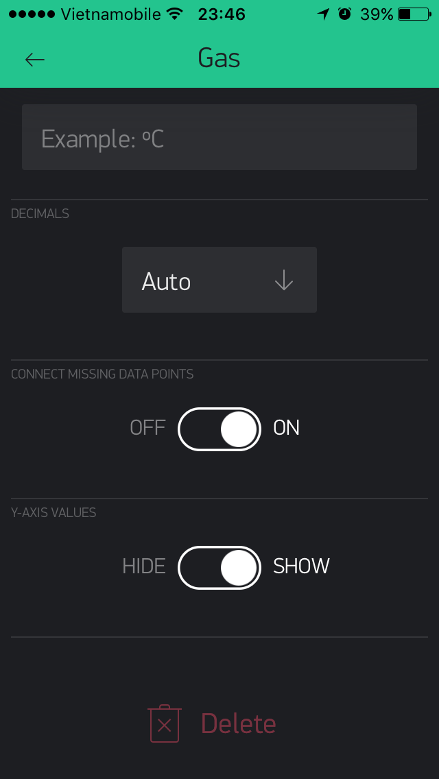 - DATASTREAMS: Ở đây mình đặt là Gas (tùy các bạn đặt gì cũng được).