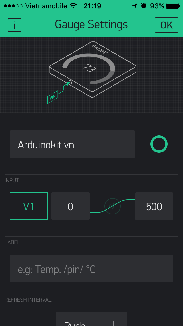 - Ở mục “Gauge”: Đặt tên cho dự án ở đây mình đặt là “Arduinokit.vn”.