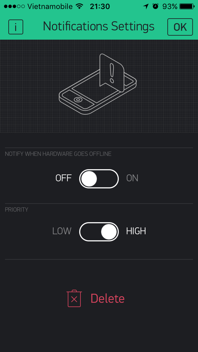 Ở mục “NOTIFY WHEN HARDWARE GOES OFFLINE”: Để mặc định nút OFF