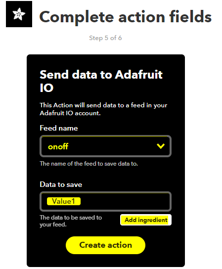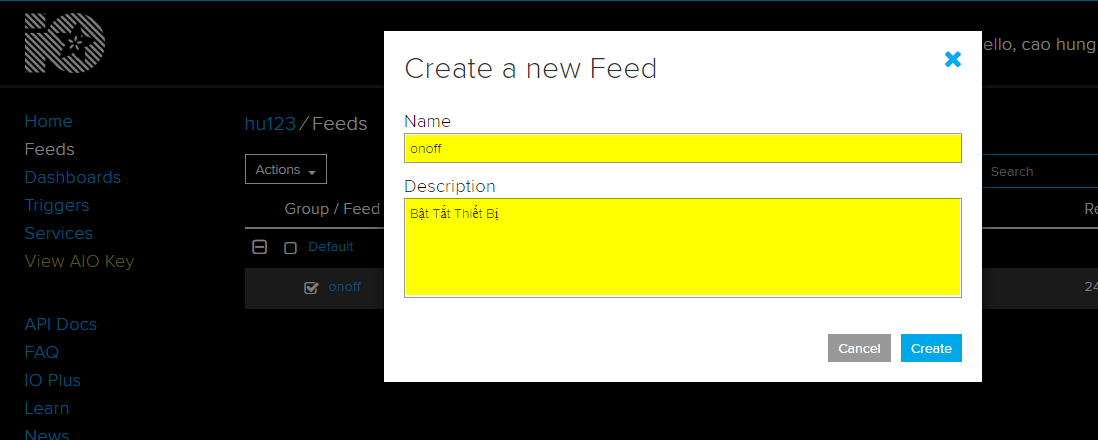 - Mục Feed name mình chọn “onoff” ở phần tạo một Feed dự án ban đầu.