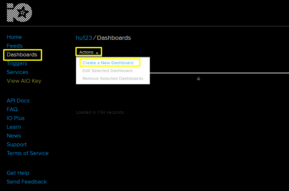 Bây giờ chúng ta sẽ tạo một Dashboards (bảng điều khiển) để điều khiển trực tiếp trên Adafruit IO.