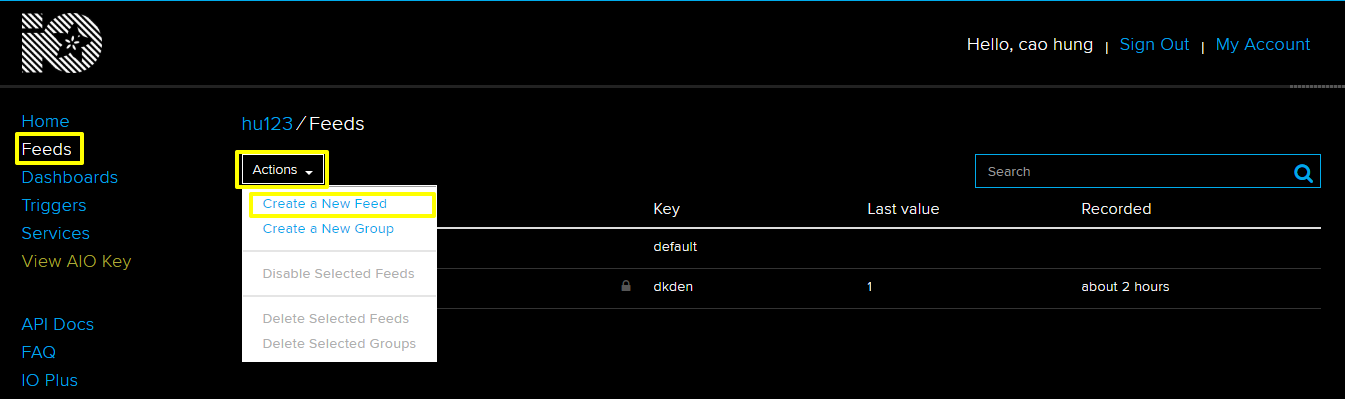 Thiết lập Feeds và Dashboards trên iO Adafruit