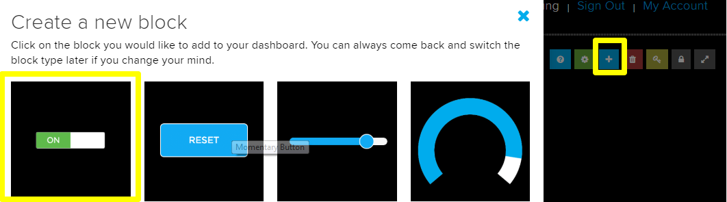 Chọn dấu + để tạo block mới và chọn Toggle như hình.