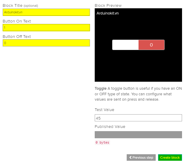 Ở mục Block Title mình đặt là Arduinokit.vn, ở đây bạn ghi gì cũng được nhé.