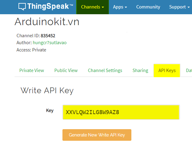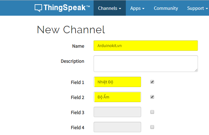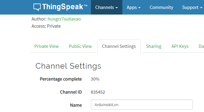 Tạo tài khoản Thingspeak và tạo kênh mới