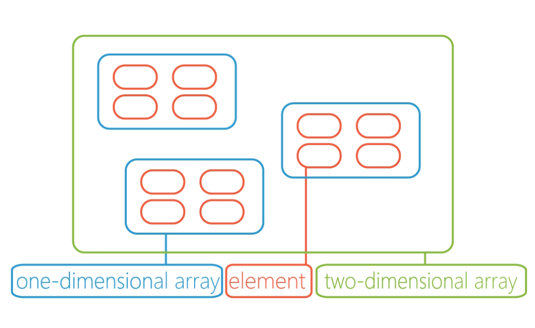 Mảng 1 chiều được cấu thành với các phần tử và mảng 2 chiều được cấu thành với các mảng một chiều.
