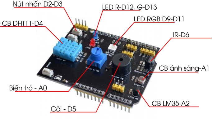 Các thành phần trên Shield Arduino Cơ Bản 9 in 1